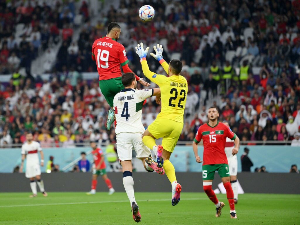 وباعتباره أول منتخب عربي ورابع منتخب أفريقي يبلغ ربع نهائي كأس العالم بعد الكاميرون والسنيغال وغانا، واجه رفاق غانم سايس في ربع النهائي منتخب البرتغال الذي كان يعد من أبرز المرشحين للفوز باللقب. لكن الأسود كان لهم رأي آخر، حينما تمكنوا من حصد الفوز بهدف لصفر، من توقيع المهاجم يوسف النصيري الذي بصم على اسمه بأحرف من ذهب ضمن قائمة اللاعبين العرب الذين سجلوا ثلاثة أهداف في تاريخ المونديال.