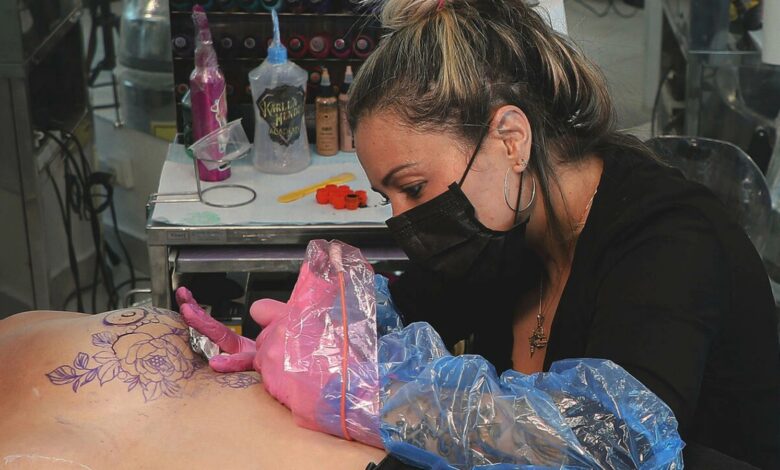 تقف البرازيلية مارلين سيلفا دوس سانتوس أمام المرآة وتتأمل وشماً على شكل أزهار يخفي آثار العملية التي أجريت لها بعد إصابتها بسرطان الثدي قبل خمس سنوات. وتقول المرأة البالغة 51 عاماً “حتى لو لم يكن الآخرون يستطيعون رؤية هذه الندبة، كان يزعجني أن أراها”.