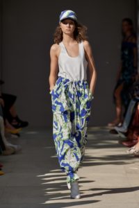 وتنوعت المجموعة بين البنطلونات الواسعة، والشورتات الضيقة والتنانير القصيرة، إضافة إلى القمصان الواسعة والكنزات، وفي ما يتعلق بالألوان، فقد برز اللونان الأزرق والأخضر بتدرجاتهما، إضافة إلى الأرجواني وألوان الباستيل الهادئة.