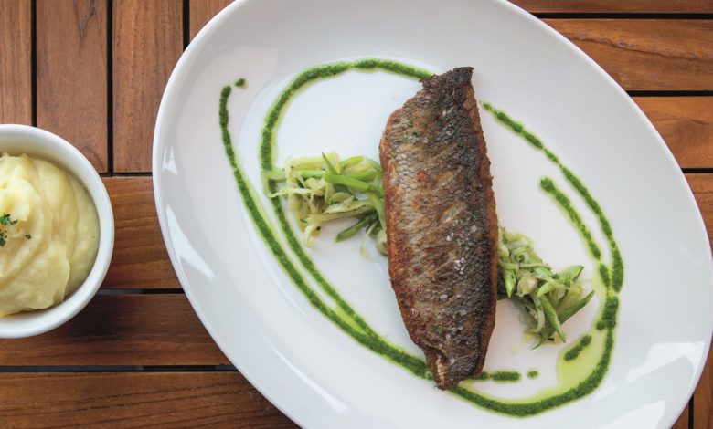 – في مقلاة أخرى تقلى شرائح القاروص في الزيت النباتي وتصفى وتوضع على ورق الزبد وتترك جانباً.