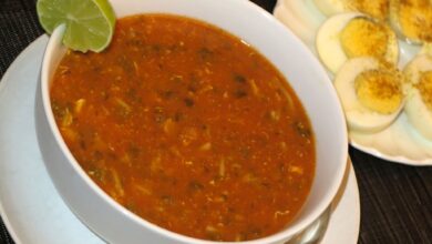 – يضاف الكراث وأوراق الكزبرة الخضراء والليمون ويقلب جيداً لمدة 5 دقائق.