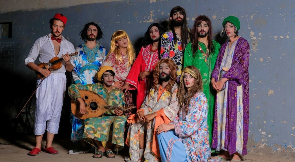يعتلي أعضاء فرقة “كباري الشيخات” الغنائية خشبة المسرح متزينين بماكياج فاقع ومسدلين على رؤوسهم شعرا مستعارا ومرتدين فساتين القفطان النسائي التقليدي، في عرض يسعى الى إحياء موسيقى العيطة الشعبية التي تندرج ضمن الفنون النسائية التراثية في المغرب.