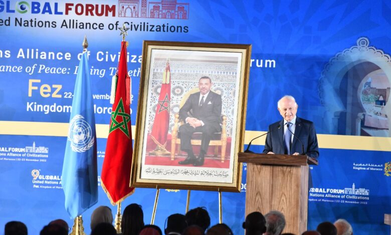 جاء ذلك في الرسالة السامية التي وجهها صاحب الجلالة إلى المشاركين في الدورة التاسعة للمنتدى العالمي لتحالف الحضارات الذي ينعقد اليوم وغداً بمدينة بفاس، حيث تساءل الملك محمد السادس: “ألم يكن للمغرب الحظوة والشرف بأن يكون من بين الأعضاء المؤسسين لهذا التحالف ؟ أليست فاس هي العاصمة الروحية لمملكة عريقة ؟ أليست جامعة القرويين التي تحتضنها فاس هي أقدم جامعة في العالم – والوجهة التي كان يحج إليها العلماء المسلمون واليهود، بل وحتى أحد البابوات، طلباً لاستكمال العلم والمعرفة ؟ ألا تشكل جامعتها الأورو-متوسطية حالياً فضاءً للحوار الأكاديمي والثقافي بين ضفتي المتوسط؟ ولذلك فمدينة فاس تجسد، بكل تأكيد، كل معاني التحالف والتلاقح الخصب بين الحضارات”.