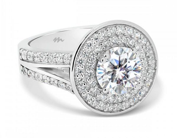 اختارت ماركة موا موا أن تتحدى المألوف في نسختها من خاتم الهالة وهو خاتم هارلو الأنيق المرصع بحجر مويسانيتي مركزي قطع دائري، وهو خيار غير معتاد في أحجار الهالة ويحيط بالحجر المركزي في الخاتم مجموعة من الأحجار الماسية البراقة والمتراصة والتي تكون شكل هالة مزدوجة.