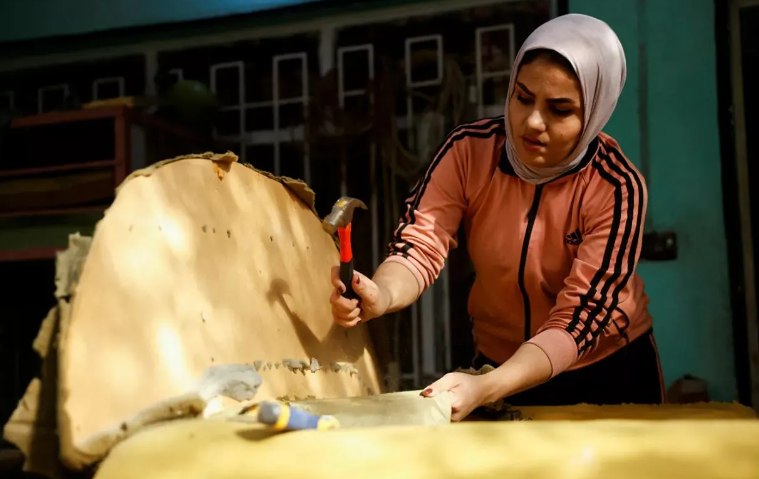 في باحة منزلها، أسست العراقية نور الجنابي ورشتها الخاصة بالنجارة، حيث اختارت مهنة تكاد أن تكون احتكارا للرجال، لكنها تبدو سعيدة باختيارها هذا الذي حطمت به حاجزا داخل المجتمع العراقي المحافظ.