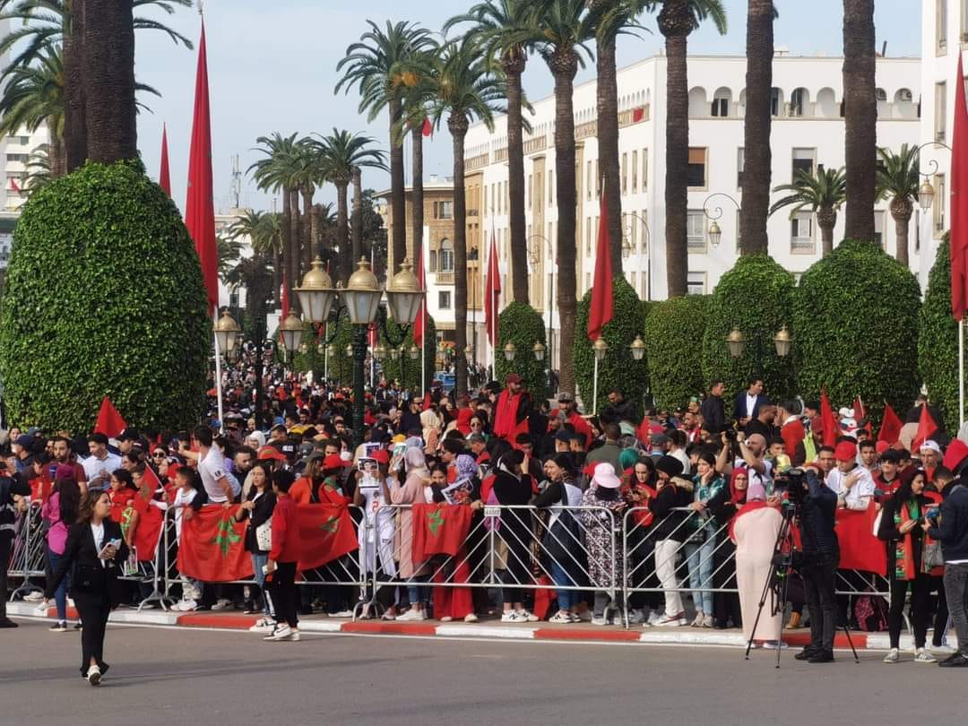 وشهد وصول منتخبنا المغربي إلى الرباط تواجد عشرات الآلاف من الجماهير حاملين للأعلام الوطنية ومختلف وسائل التشجيع، انتشروا، منذ صباح اليوم، على طول الطريق الرابطة بين مطار الرباط – سلا ومرورا بمختلف الشوارع والساحات التي سيعبرها موكب المنتخب الوطني، وصولا إلى باب السفراء. بكل عفوية وحماس، اصطف المواطنون، الذين فضل عدد كبير منهم ارتداء الأقمصة الرياضية التي خاض بها المنتخب الوطني مبارياته في منافسات كأس العالم، للتعبير عن شكرهم وامتنانهم لبعثة الفريق الوطني التي أثلجت الصدور وأدخلت الفرحة والسرور لقلوب جميع المغاربة بأدائها البطولي في مونديال قطر.