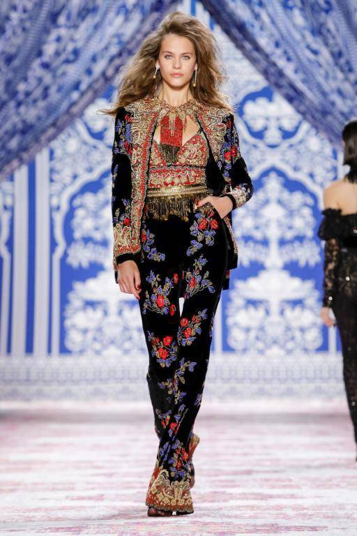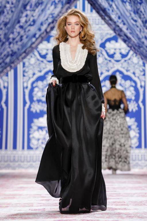 أما في مجموعتي “أوسكار دي لا رينتا “و”نعيم خان” فتميزتا بطابع شرقي فاخر ومعاصر في الوقت ذاته، حيث كثرت التطريزات والزخرفات على الأقمشة، وكذلك القصات التي بدت إلى حد بعيد مشابهة لموديلات القفاطين.
