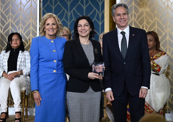 استضافت السيدة الأولى للولايات المتحدة الأمريكية، جيل بايدن، بمعية وزير الخارجية الأميركي أنتوني بلينكن، الإثنين 4 مارس2024، في البيت الأبيض بواشنطن، النساء المتوجات بـ”جائزة المرأة الشجاعة الدولية لعام 2024″، من بينهن المغربية رابحة الحيمر.
