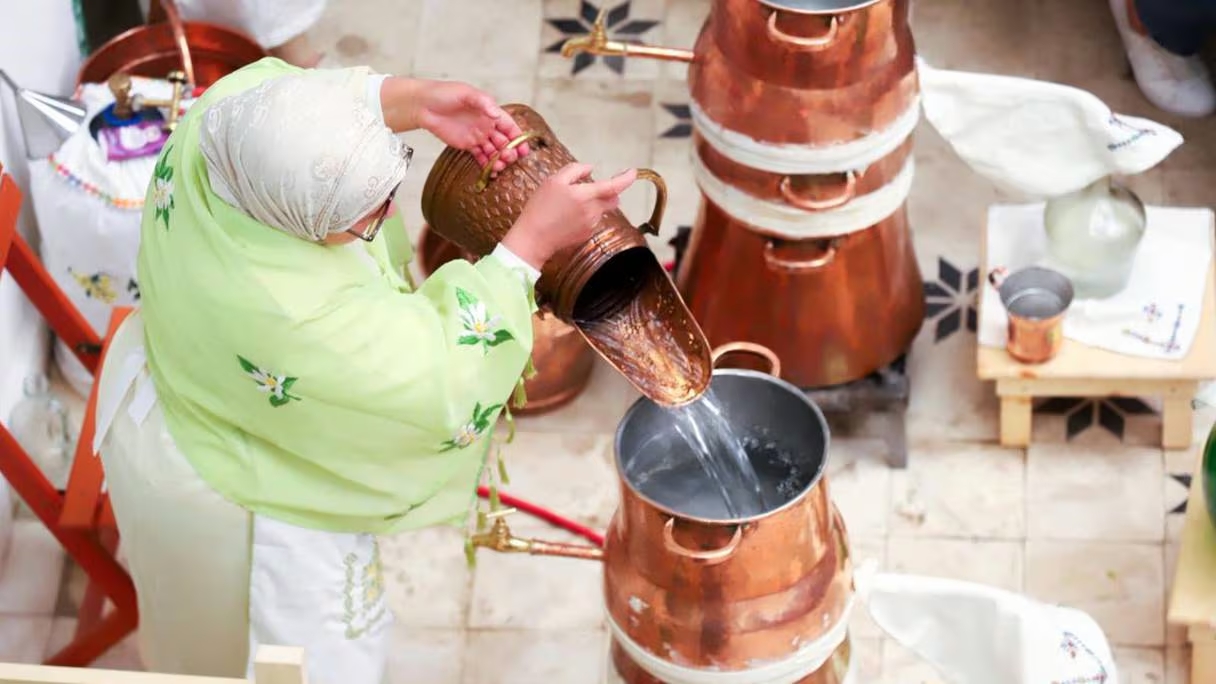 بعد الانتهاء من عملية القطف،تُجهَّزُ الآنية المخصصة للتقطير خلال الليلة التي تسبق موعد العمل. وتحرص النساء في اليوم التالي بعد صلاة الفجر، على الاستعداد لعملية التقطير، وعادة ما تكون النساء من المتقدمات في السن ويرتدين ملابس بيضاء معطرة بالمسك، ويشترط فيهن أن يكن على وضوء، وأن يصلبن ركعتين، ثم يبدأن العمل، وأولى خطواته تنظيف المكان الذي ستتم فيه العملية، مع نشر البخور، إضافة إلى تجهيز القوارير التي سيخزن فيها ماء الزهر، وذلك من خلال تعطيرها بالعود والمسك، حتى لا تختلط رائحة الورد بأي رائحة غير مرغوب فيها.