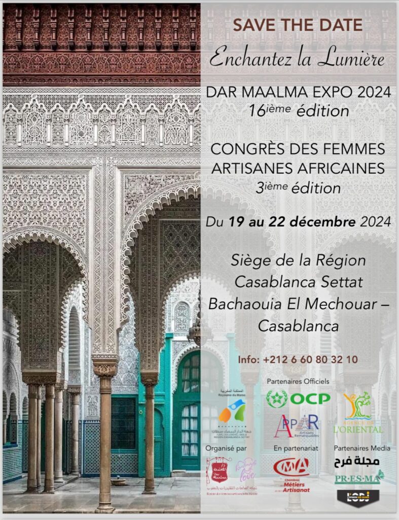 “افتتنوا بسحر المغرب وفرادته بصيغة المؤنث”، بهذا الشعار تنطلق فعاليات الدورة السادسة عشرة لمعرض دار المعلمة، والدورة الثالثة من مؤتمر النساء الحرفيات الإفريقيات.