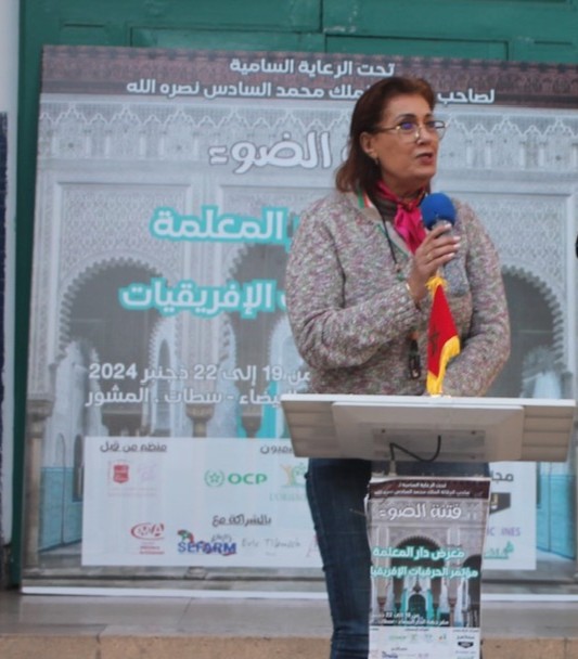وفي ختام المعرض، أكدت فوزية طالوت المكناسي، رئيسة جمعية دار المعلمة، أن البرامج الغنية لهذه الدورة تماشت مع التوجيهات الملكية السامية التي تناولت أهمية تأهيل وحفظ المعارف التقليدية التي تملكها النساء الحرفيات في المملكة وإرشادات صاحبة السمو الملكي الأميرة الجليلة للا مريم.
