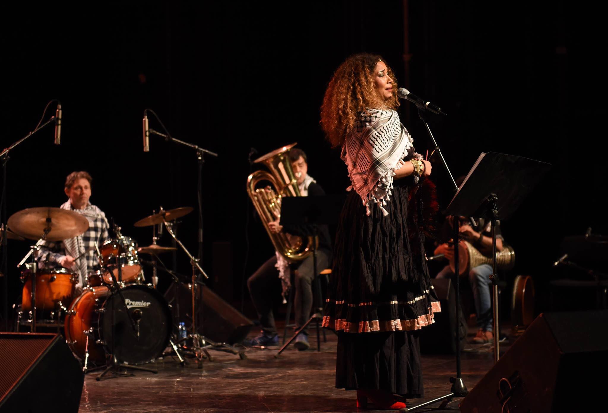 غالية بن علي تبدع بالكوفية الفلسطينية في مهرجان “رحلة الروح”