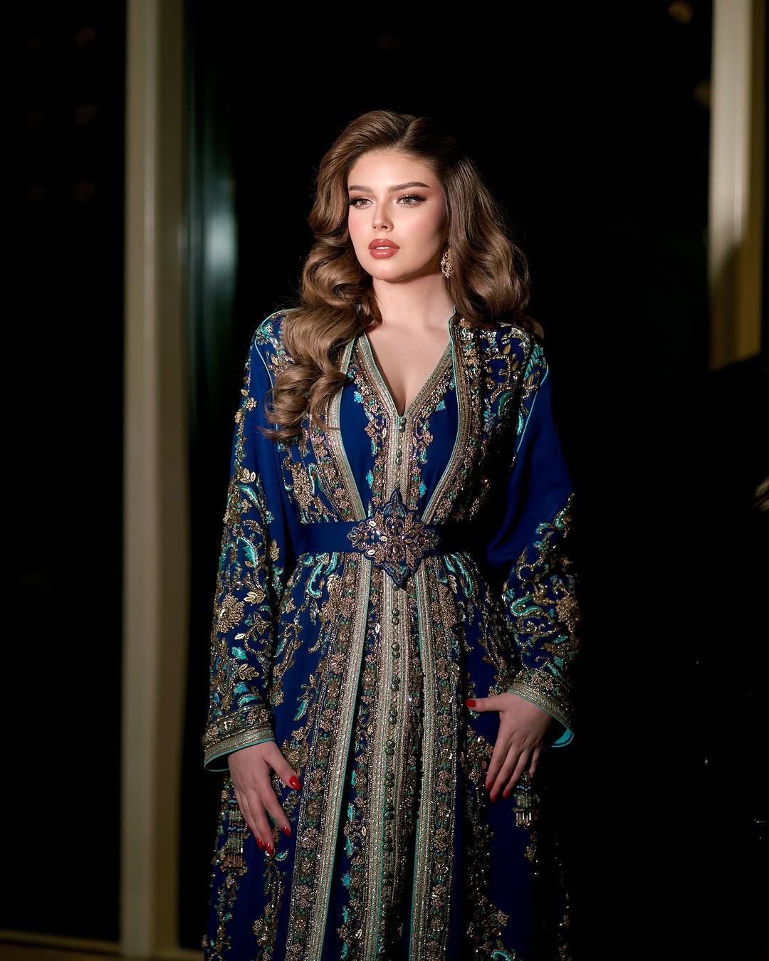 وجدان سعيد : قفطان أزرق فاخر بالأحجار اللامعة