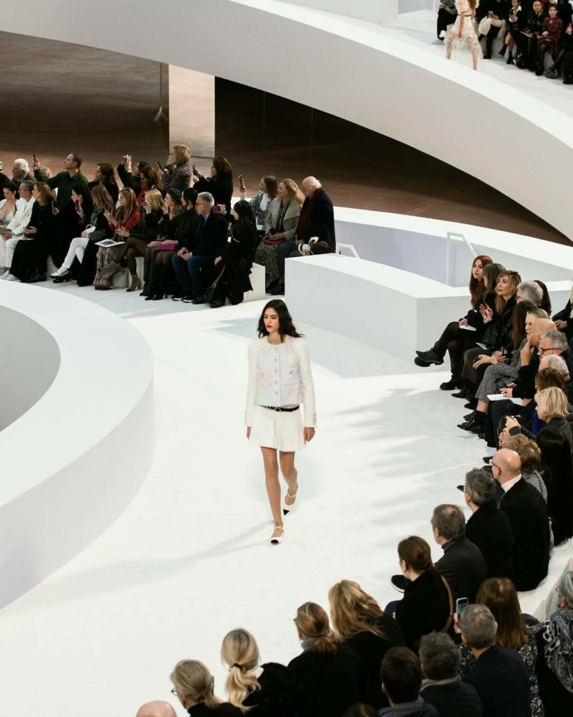 وأقيم الحدث على منصة في “غران باليه” الباريسي على شكل حرفَي “سي” متشابكين، شعار “شانيل” البصري الشهير، أمام أنظار مجموعة من المشاهير، في مقدّمهم كايلي جينر وباميلا أندرسون.