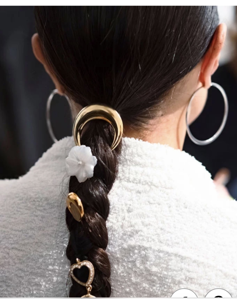 تعيدنا هذه التسريحات إلى ذكريات الطفولة، حيث اعتادت الأمهات على تزيين شعر الفتيات بالمجوهرات،
