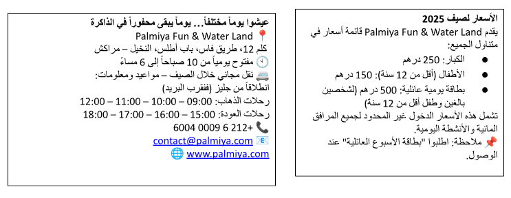يُعلن Palmiya Fun & Water Land بكل حماس عن الافتتاح الرسمي لمنتزهه المائي أمام العموم، إيذانًا بانطلاق موسم صيفي عنوانه: المتعة الكاملة، الانتعاش المستمر، والإثارة في أجمل صورها.