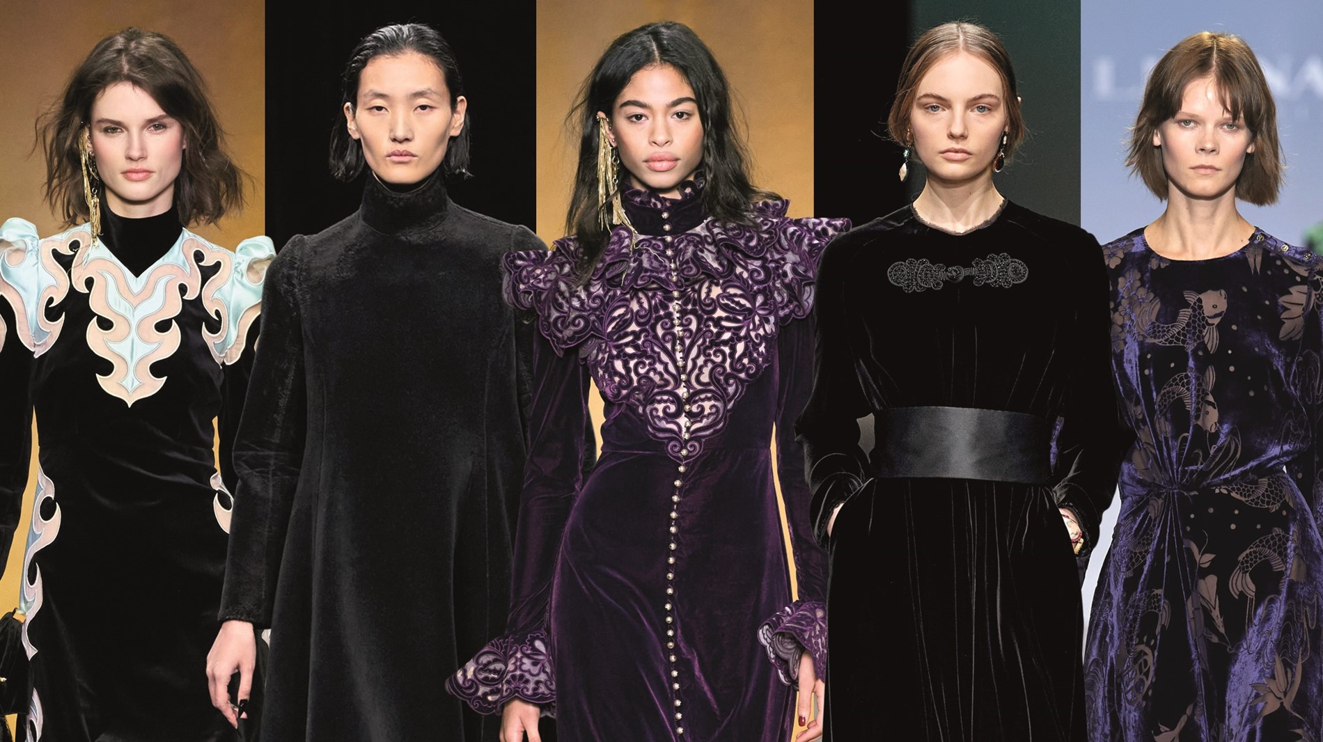 من عروض أزياء موسم الخريف والشتاء، نقدم لك تشكيلة متنوعة من التصاميم المخملية لتختاري منها ما يناسبك.